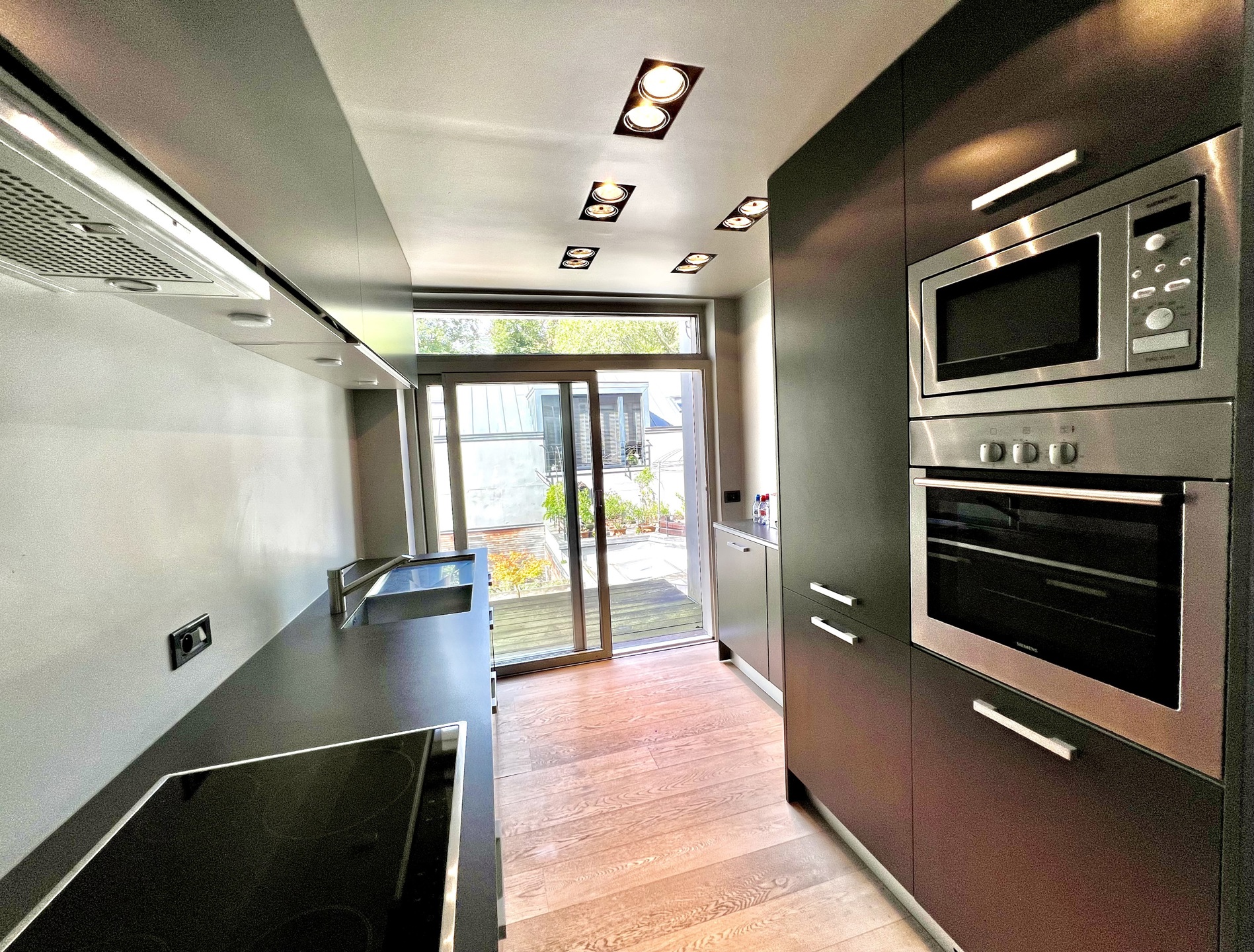 Sur le Boulevard de Waterloo, maison à louer de près de 200m2, répartie sur 4 étages. Sas de sécurité à l'entrée, arrivée vers un bel espace bureau, à l'étage les réceptions salon et salle à manger, la cuisine Varenna entièrement équipée en enfilade donnant l'accès à une belle grande terrasse en bois.