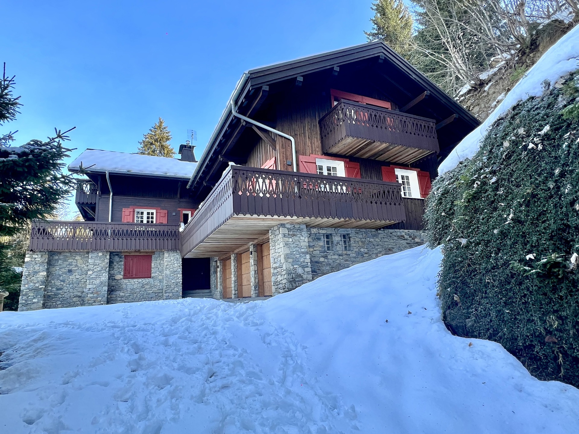 Een weelderig gerenoveerd alpenchalet dat de authenticiteit van de architectuur heeft behouden en tegelijkertijd moderne luxe faciliteiten biedt voor een onvergetelijke ervaring. De buitenkant van steen en oud hout, in overeenstemming met de lokale traditie, is charmant, maar het is het interieur, gerenoveerd met comfort en moderniteit, dat je zal overtuigen. De zes slaapkamers, elk met een eigen badkamer of doucheruimte, zijn perfect om te genieten met familie of vrienden. Bovendien bieden het doorlopende balkon en de terrassen een adembenemend uitzicht op de omliggende bergen. Het chalet heeft ook drie garages en is omgeven door een uitgestrekt terrein.